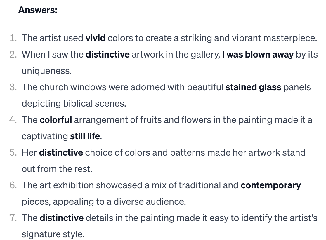При обучении лексике чат-бот может помочь создать упражнения, направленные на расширение словарного запаса, например, задания на синонимы, антонимы, определения слов, выбор соответствующего по смыслу слова для заполнения пропусков и т.д. Также он может сгенерировать текст на основе вашего списка слов. Например, Make a gap-fill exercise with these words: (your words), Create a vocabulary task for these words: (your words).